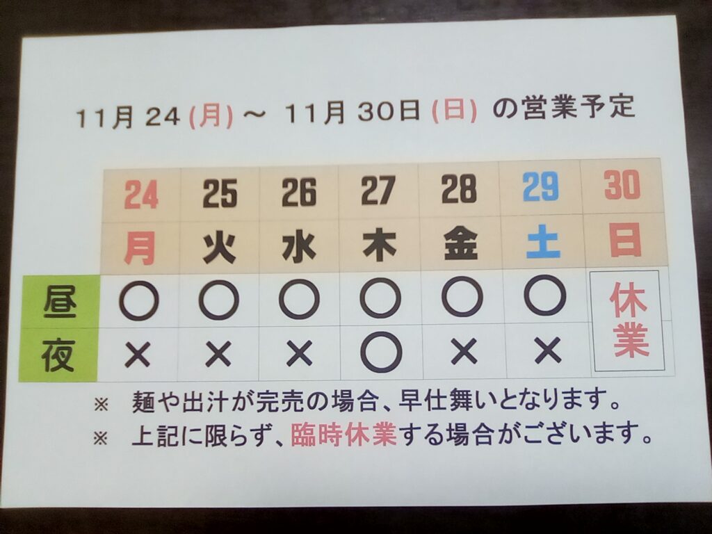 11月 27日 (木) は、夜の営業があります。